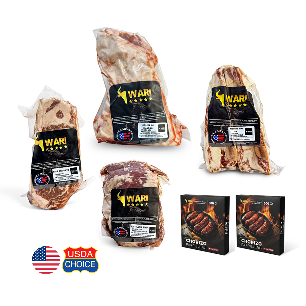 + EnvíoSelección ideal para 10 – 12 personas con carne americana premium: colita de cuadril, bife angosto y asado de tira. Incluye pack de chorizos artesanales gratis para una parrilla completa y llena de sabor.